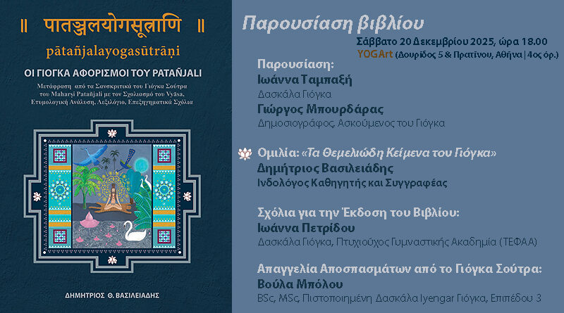 Παρουσίαση βιβλίου: «Οι Γιόγκα Αφορισμοί του Patañjali», YOGArt Studio, 20 Δεκεμβρίου 2025