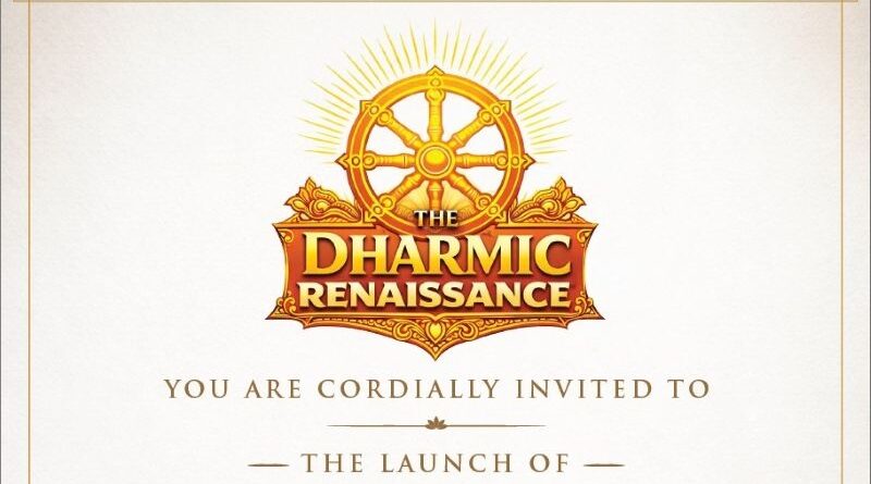 Η ΕΝΑΡΞΗ ΤΗΣ ΝΤΑΡΜΙΚΗΣ ΑΝΑΓΕΝΝΗΣΗΣ (THE LAUNCH OF THE DHARMIC RENAISSANCE, Ινδία) διοργανώνει μία ιστορική συνάντηση πνευματικών ηγετών, ακαδημαϊκών, πολιτιστικών εκπροσώπων και θεσμικών φορέων από την Ελλάδα και την Ινδία με κορύφωση την έκδοση της Κοινής Διακήρυξης “Athens Declaration”, η οποία θα αναδεικνύει τον ρόλο του πολιτισμού, της φιλοσοφίας και των διαχρονικών αξιών ως θεμελίων ειρήνης και παγκόσμιας αρμονίας.